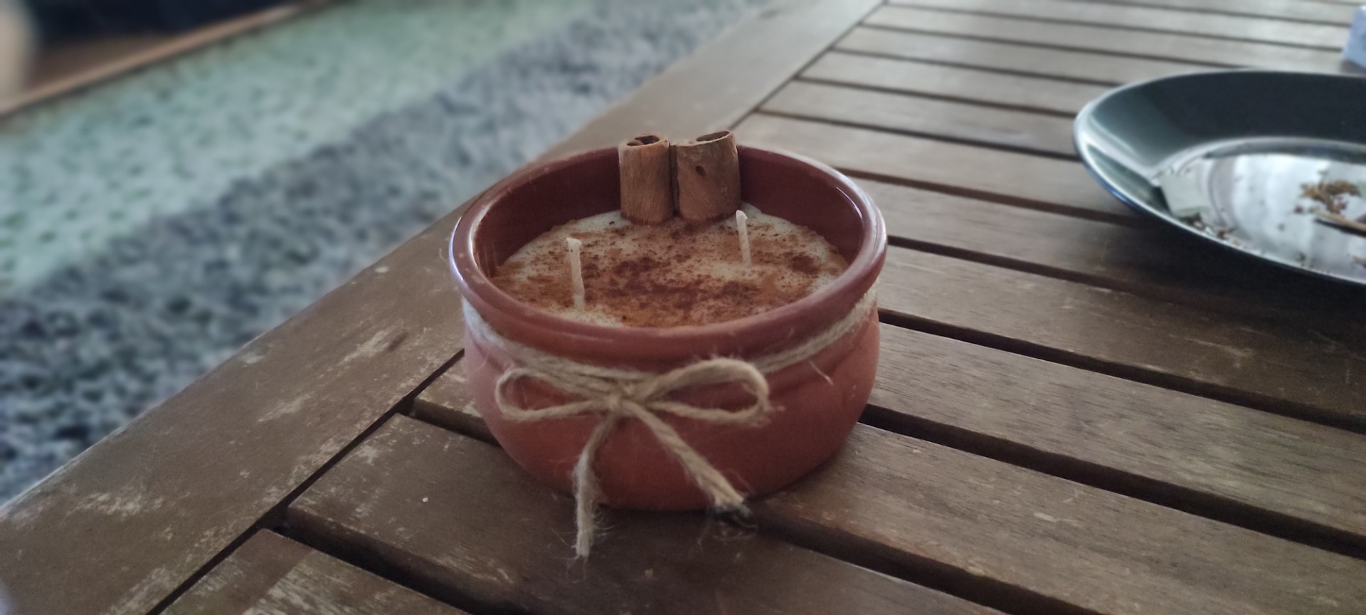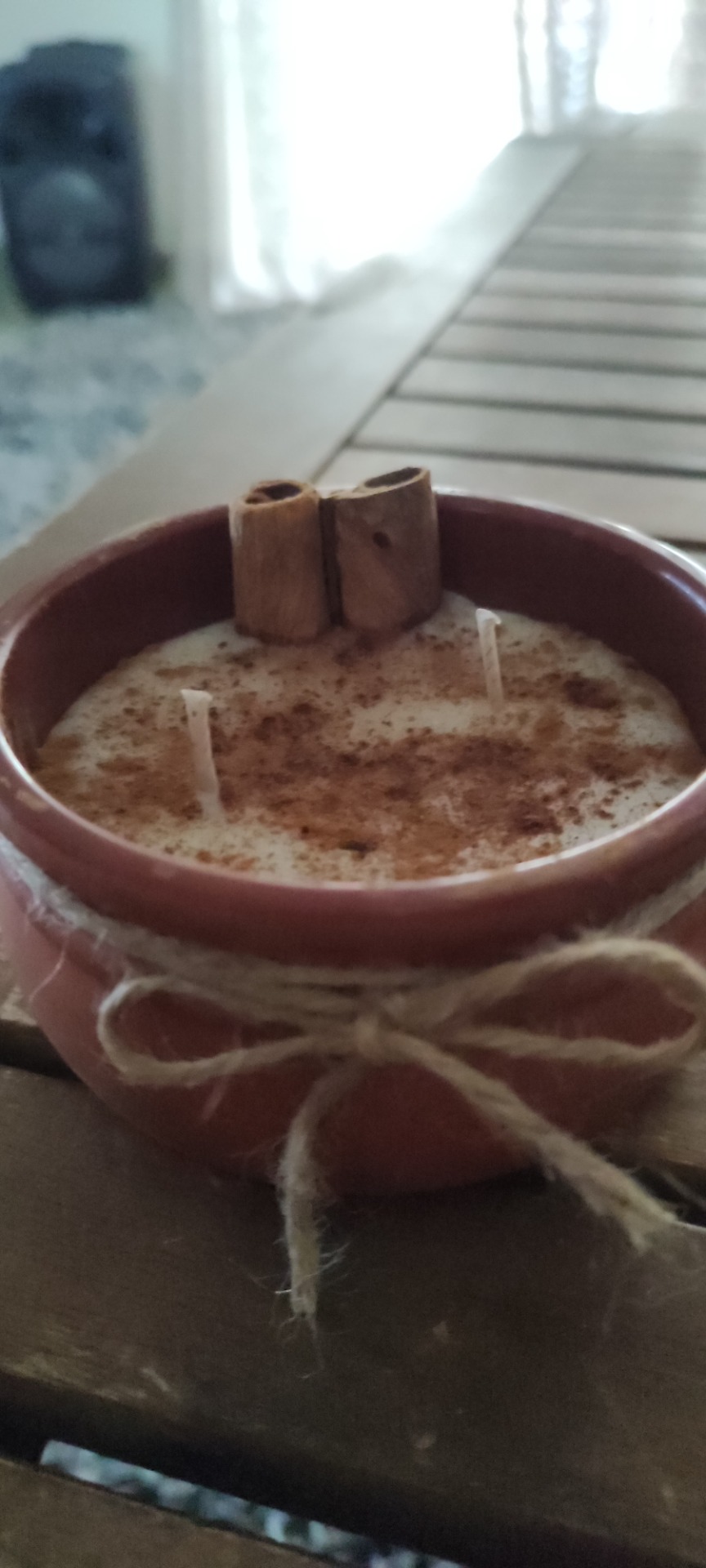 Ενεργειακό, αρωματικό, φυτικό κερί με άρωμα κανέλας, διακοσμητικά ξύλα και τρίμμα κανέλας!
